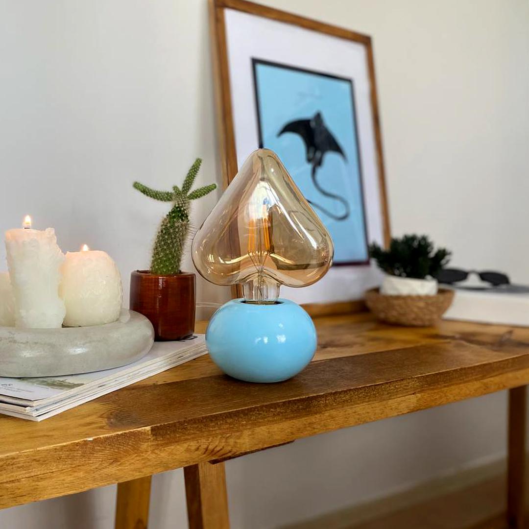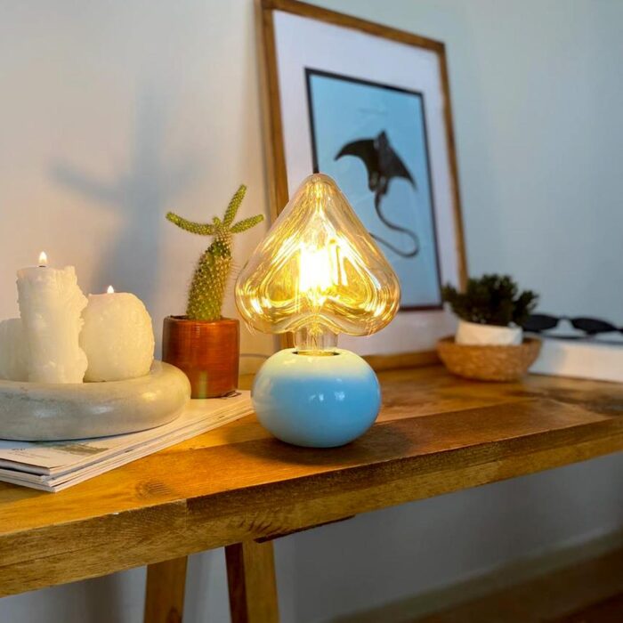 DML1054 – Mavi Küre Gövde 4w Kalp Rustik Ampul Dekoratif Masa Üstü Lamba (Ampul Dahildir)